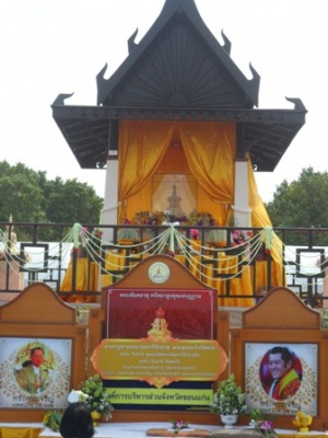 นมัสการพระทันตธาตุ สมเด็จพระพุทธกัสสปสัมมาสัมพุทธเจ้า จากราชอาณาจักรภูฎาน ณ มณฑลบริเวณศาลากลางจังหวัดขอนแก่น ระหว่างวันที่ ๒๙ มกราคม - ๑๐ กุมภาพันธ์ ๒๕๕๕